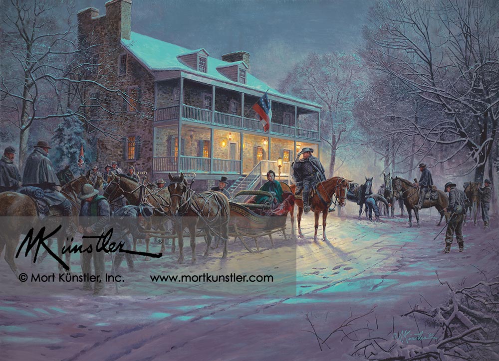 This is Mort Künstler limited edition print - Brief Encounter. Middleburg, Virginia. Feb. 1863.