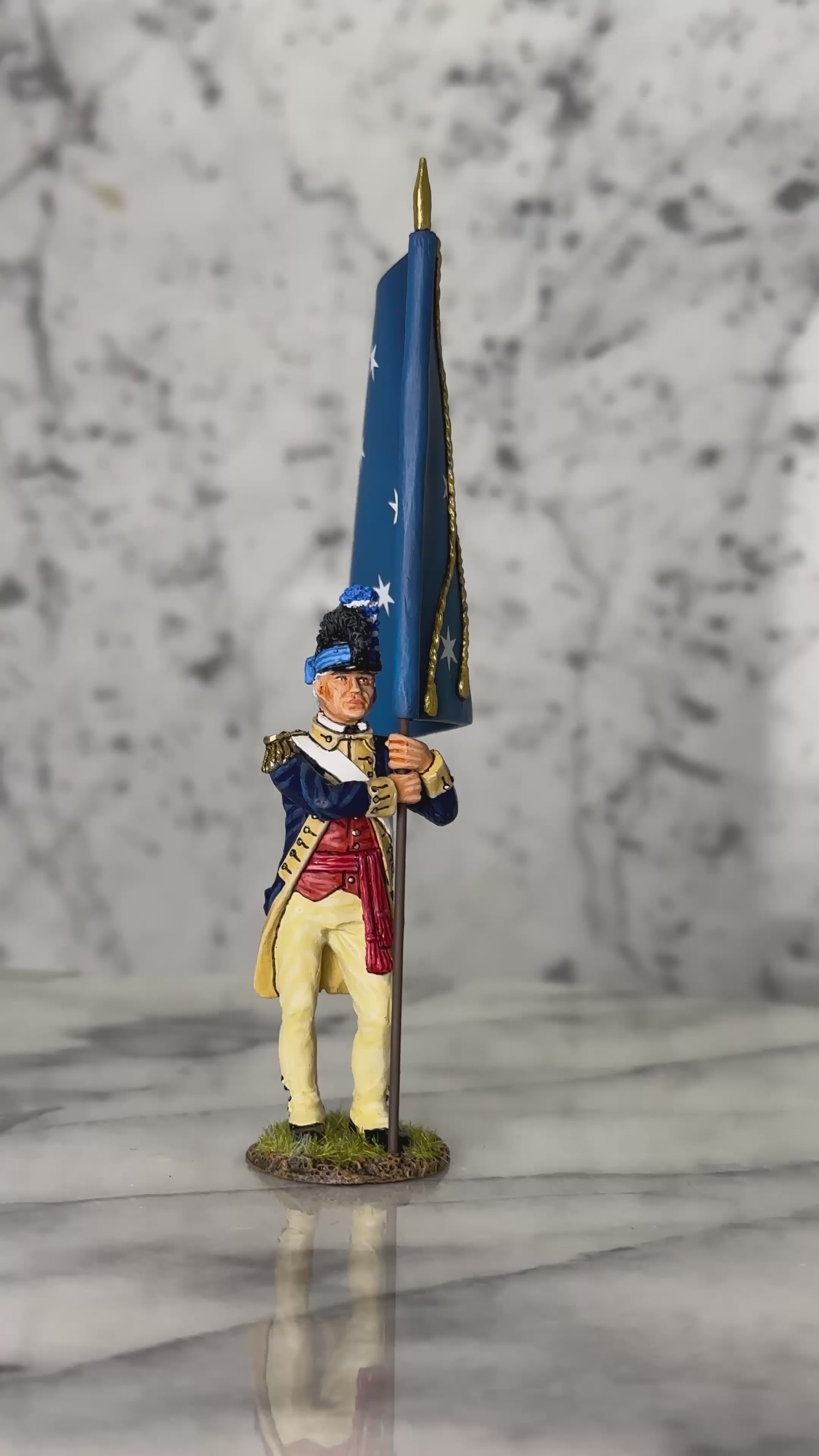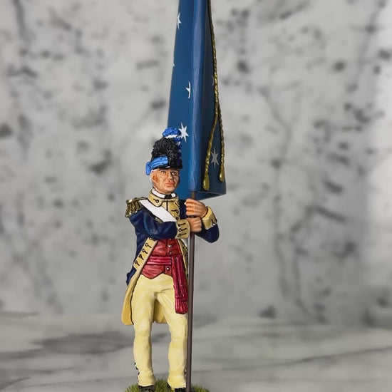 Finished in rich matte tones with crisp uniform detailing and a beautifully rendered Headquarters Flag, this figure is a standout addition to any American Revolution collection and pairs perfectly with Continental Line infantry and command figures.